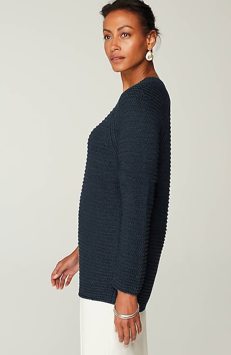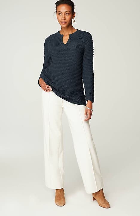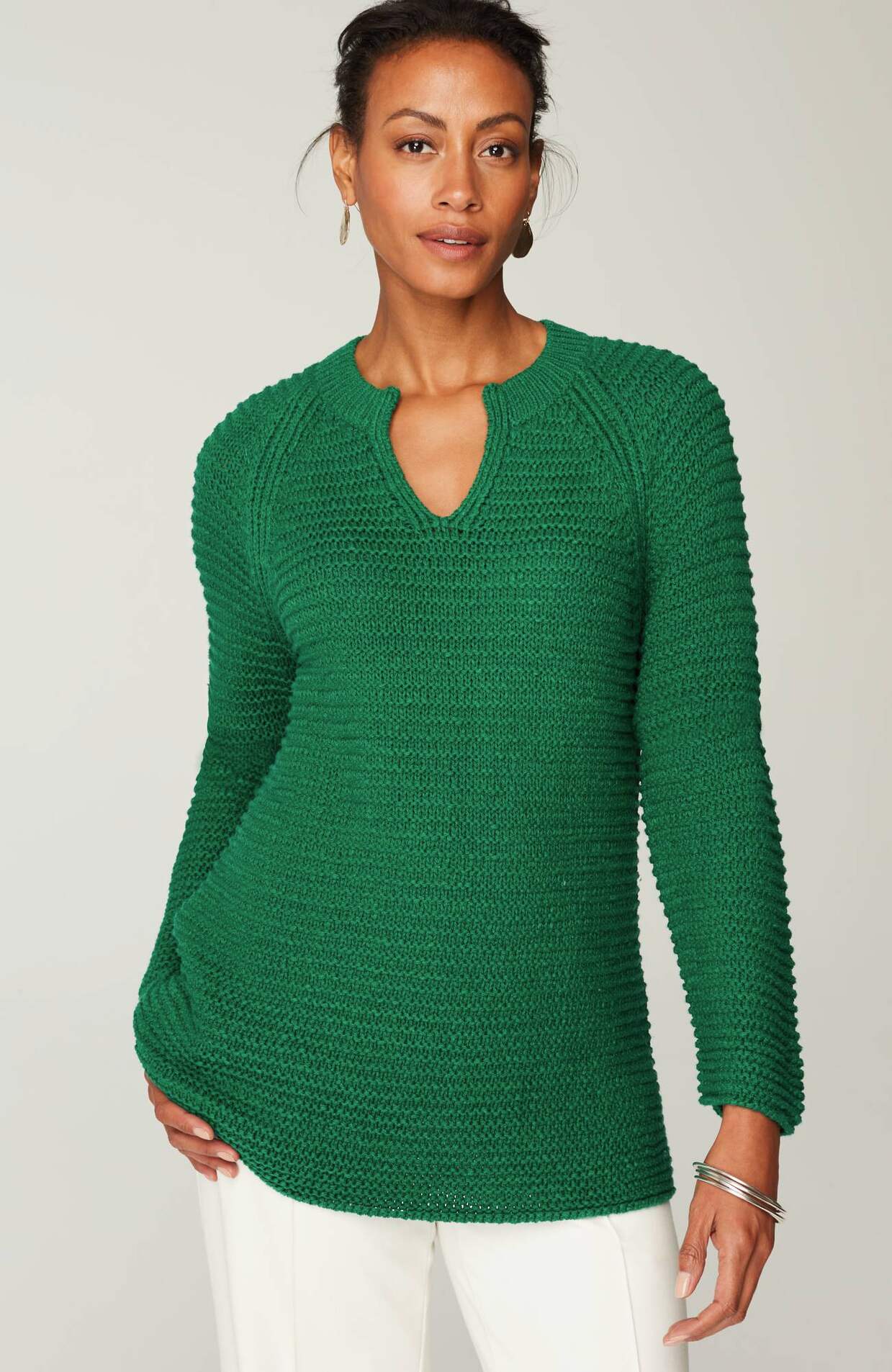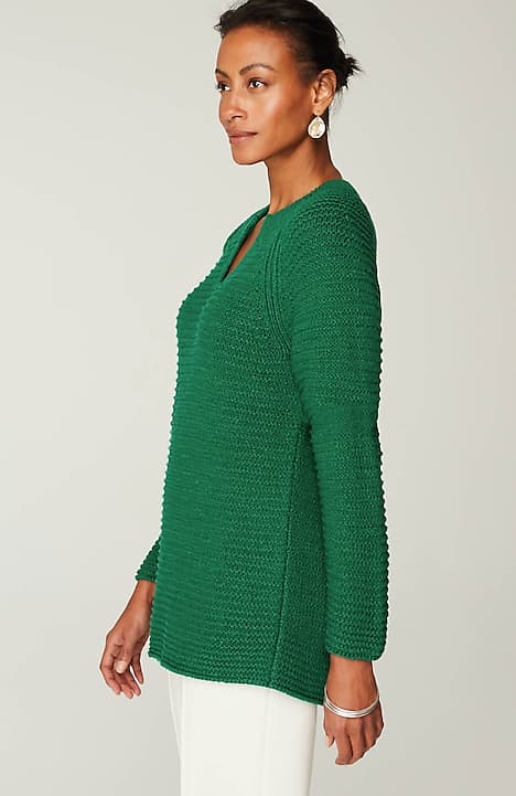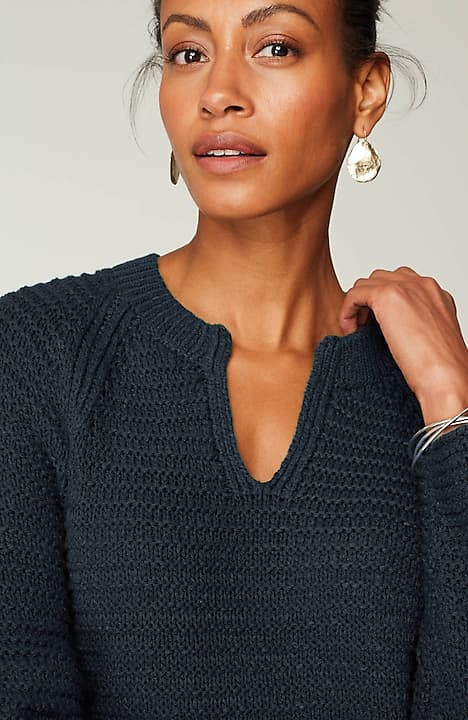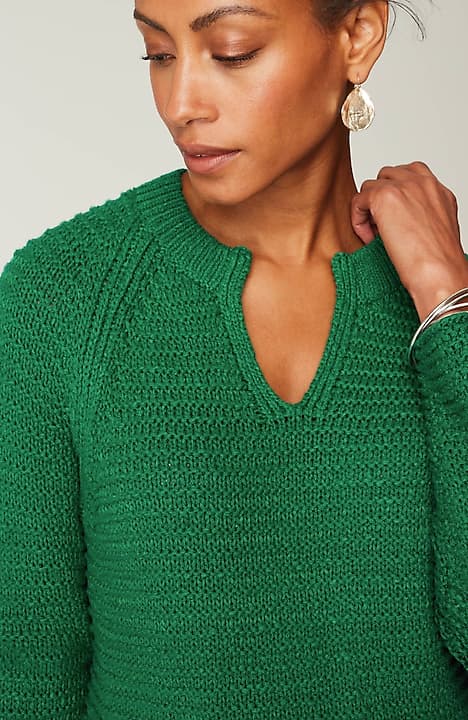 Giving cozy all the competition. Our ultrasoft textured knit sweater, designed in vibrant colors with a flattering split neckline.
